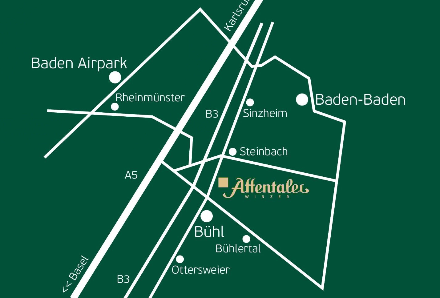 • Von der A5 - Abfahrt in Richtung Bühl